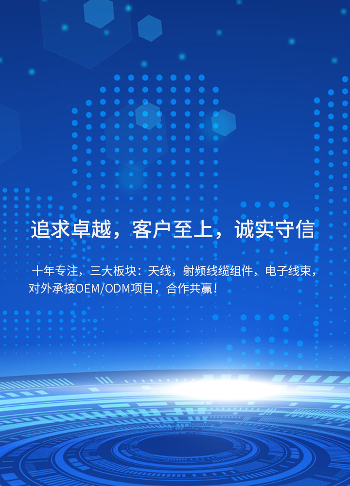 About us昆山英淋科電子有限公司成立于2013年,是一家致力于全球互聯(lián)產品的專業(yè)廠商,公司在上海和臺北設有研發(fā)中心,并建有先進的微波暗室,昆山和南陽(河南)設有兩座制造工廠.公司下轄三大產品事業(yè)部:天線事業(yè)部,主要研發(fā)生產全系列各類天線,包含手機天線,無線路由器天線,NB天線,北斗天線,汽車天線,玻璃鋼天線,吸盤天線,F(xiàn)akra天線,5G天線,鐵氧體天線,RFID天線等,并研發(fā)定制各類天線。射頻事業(yè)部,主要研發(fā)生產射頻連接器,射頻線纜組件,射頻跳線,射頻測試線纜,通信基站、機柜射頻線纜等,包含0.81、1.13、1.37、RG174、RG178、RG179、RG316、RG58、RG141/142,以及半鋼半柔射頻線纜組件。電子線事業(yè)部,主要...